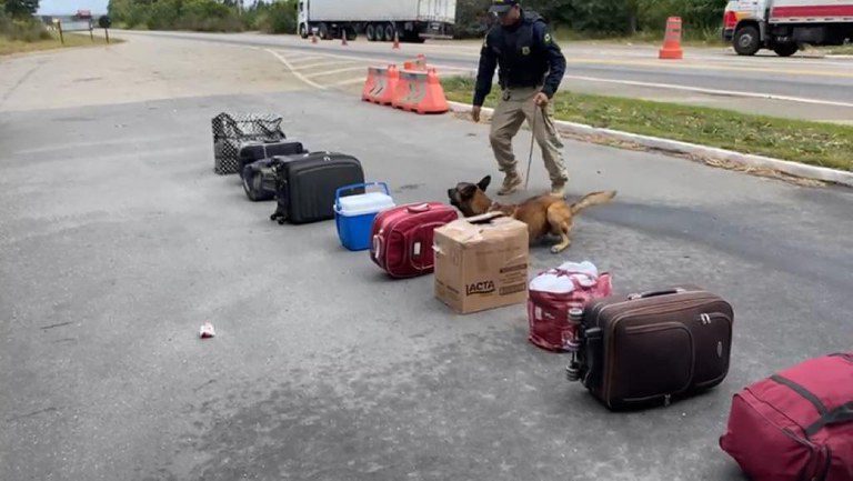 Os policiais realizavam fiscalização de combate a criminalidade na rodovia quando abordaram um ônibus que seguia de São Paulo (SP) com destino a Caruaru (PE). Ao subir no veículo e conversar com os ocupantes, a equipe decidiu aprofundar à fiscalização no ônibus. A cadela K9 Raia sinalizou que dentro de uma mala, de cor vermelha, havia droga. Os PRFs revistaram a bagagem e encontraram oito tabletes de maconha.