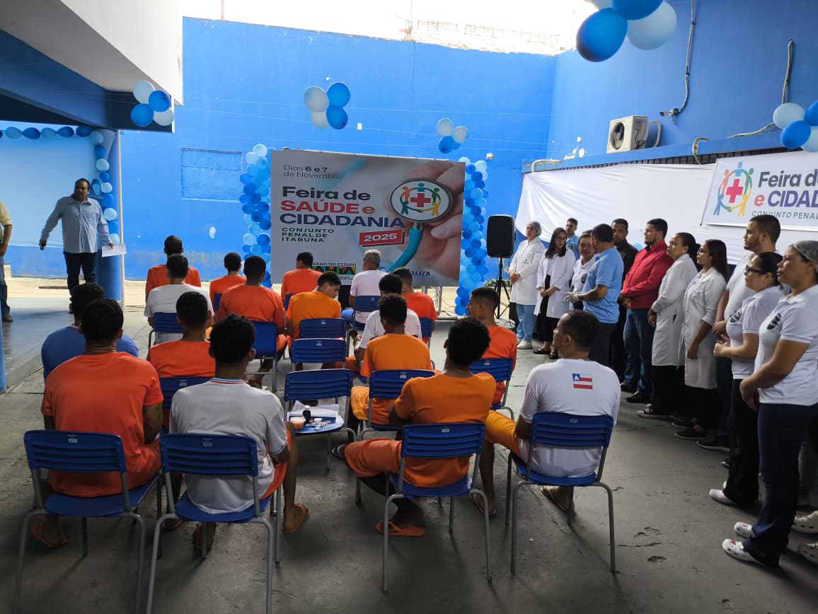 Com foco na promoção da saúde, bem-estar e exercício da cidadania, o Conjunto Penal de Itabuna realizou, nos dias 6 e 7 de novembro, mais uma edição da Feira de Saúde e Cidadania, reunindo uma rede diversificada de serviços gratuitos voltados a pessoas privadas de liberdade, servidores e colaboradores da unidade prisional.